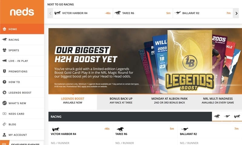 If you want to become a strong player in the Australian betting market, you need to be well-equipped with racing, which is exactly what Neds excels in. The bookmakers provide access to all Aussie races, with all standard racing bets available, such as trifectas, quinellas and quadrellas, placing Neds alongside other racing-centric bookies.